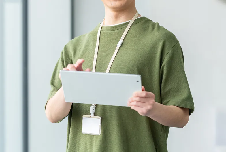 以前に介護職員や児童指導員として勤務していた際、ご利用者さまやご家族の申請業務や書類作成などの幅広い業務に携わっていた経験を生かし、現在は総務業務と現場のサポートを兼務しています。総務としては、日々の出勤状況の管理や、パソコン・携帯電話などの設定といったIT関連業務を担当しています。